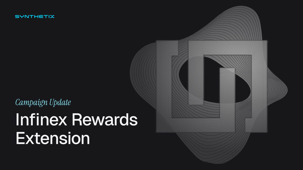 ¡Los depositantes de sUSD en Infinex continuarán ganando recompensas a través del lanzamiento de Synthetix Mainnet! Esta extensión de campaña garantiza la estabilidad continua en sUSD a medida que completamos la Competencia comercial de Synthetix Mainnet y llenar los bolsillos de los depositantes antes de la temporada navideña.